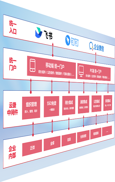 对协作平台提供支持服务,,支持企业应用与协作平台对接,,包含组织同步、、消息集成、、、待办集成等。。。支持目前主流的协作平台:钉钉、、、企微和飞书。。